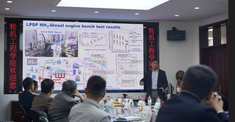 会上,专家学者分别从轮机工程、燃烧学、材料科学领域作学术报告。上海交通大学教授李铁就氨燃料船舶发动机提升效率与降低排放的策略研究进行了深入剖析;大连化物所仪器分析化学研究室主任冯亮介绍了基于高性能敏感膜的氨气传感器;北京大学教授米建春分享了氨动力及其船舶发动机的研究成果。