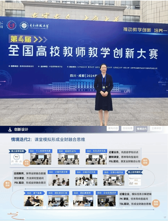 谭小芳团队的教学创新实践始于对传统教学模式的深入反思,教学团队以学生为中心,注重培养学生的批判性思维和创新能力,以《真场景·多迭代·深融合——管理会计课程创新》为主题,以跨课整合打破知识壁垒、校企携手打造真场景、探究迭代有效激活课堂,构建理实融合、业财融合与专政融合的人才培养模式,通过财课业课数据课,课课相融,引导学生企事国事天下事事事关心。谭小芳团队以满腔热情投身于教学创新的探索之中。他们在教学方案的细致雕琢中,展现了专业精神;他们在教学材料的精心挑选与整合中,体现了教育智慧;他们在教学实施的不断尝试与完善中,彰显了执着追求。