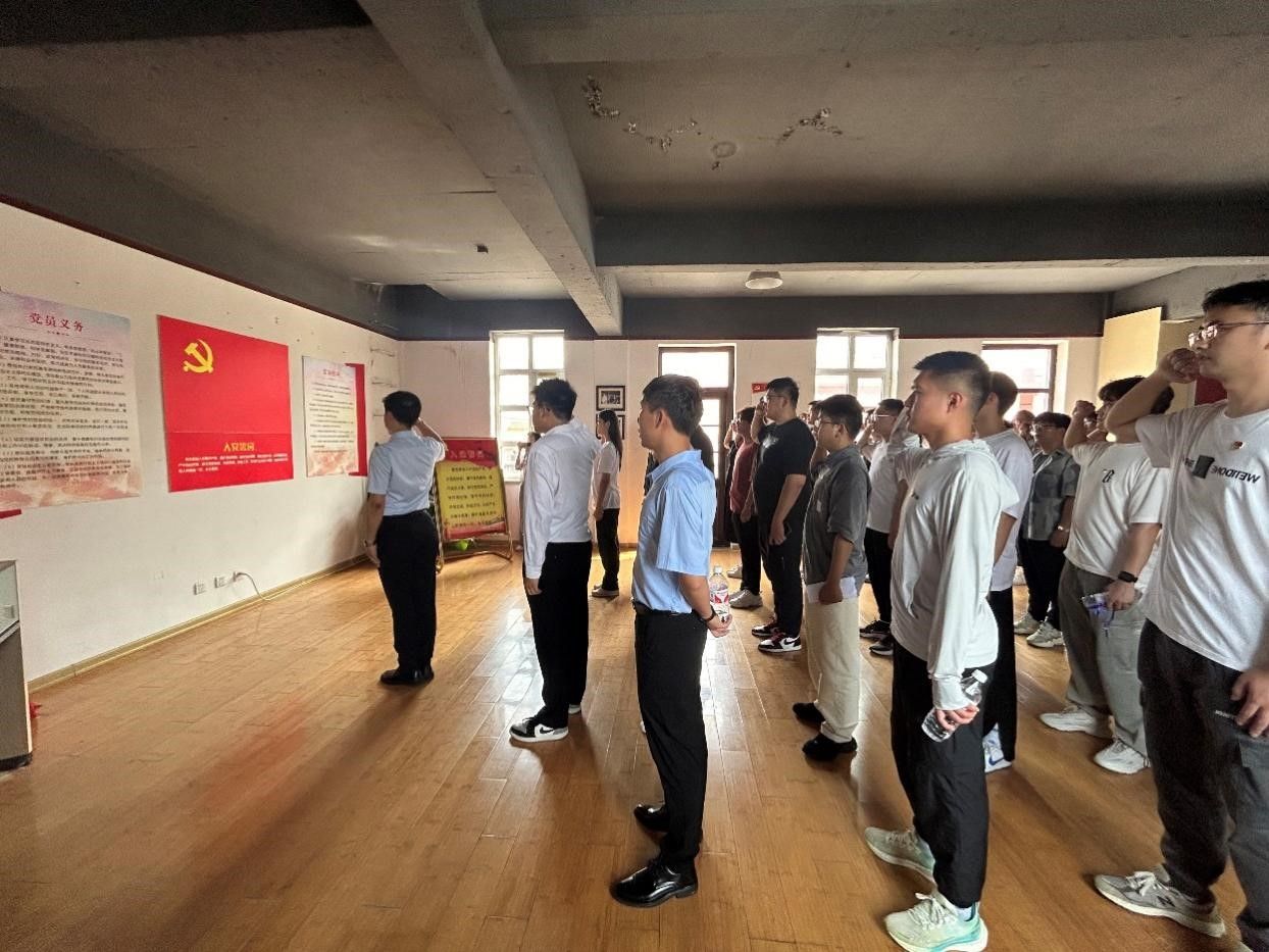 参观结束后,由支部书记领誓,支部全体党员在纪念馆二楼重温入党誓词。全体师生从革命先烈的英勇事迹中汲取精神能量,从红色基因中赓续艰苦奋斗精神,不忘初心使命、强化自身意识。