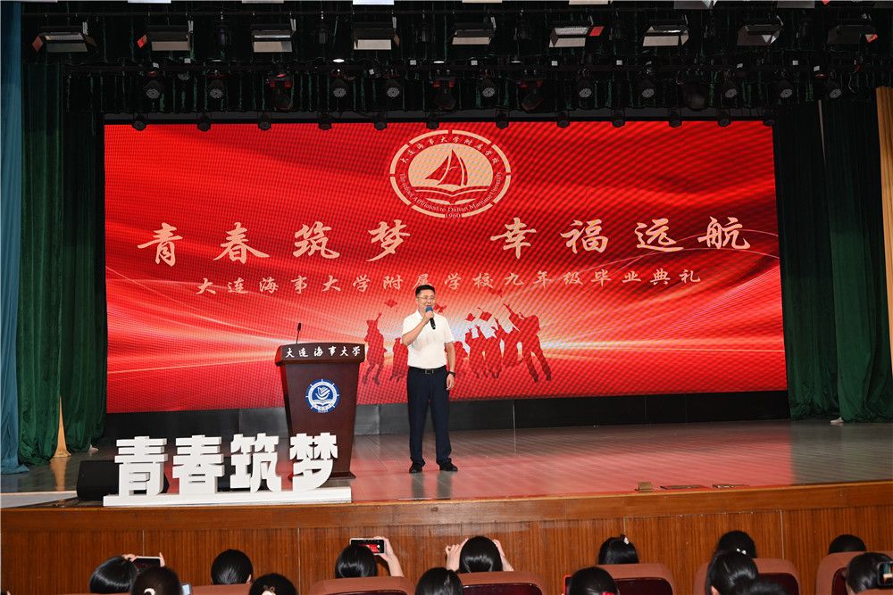 岁月缱绻,葳蕤生香。6月26日下午,大连海事大学附属学校2024届九年级毕业盛典在大连海事大学礼堂隆重举行。此次典礼由初中德育主任王铎主持,初中全体师生齐聚会场。本届典礼诚邀九年级家长到场,见证学生们毕业的美好时刻。
