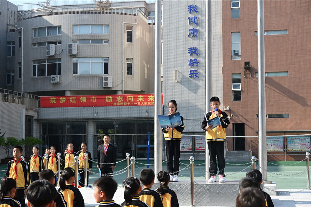 近日,大连海事大学附属学校隆重举行“筑梦红领巾,励志向未来”入队仪式,二年级学生光荣加入中国少年先锋队,为少先队注入了新的力量。