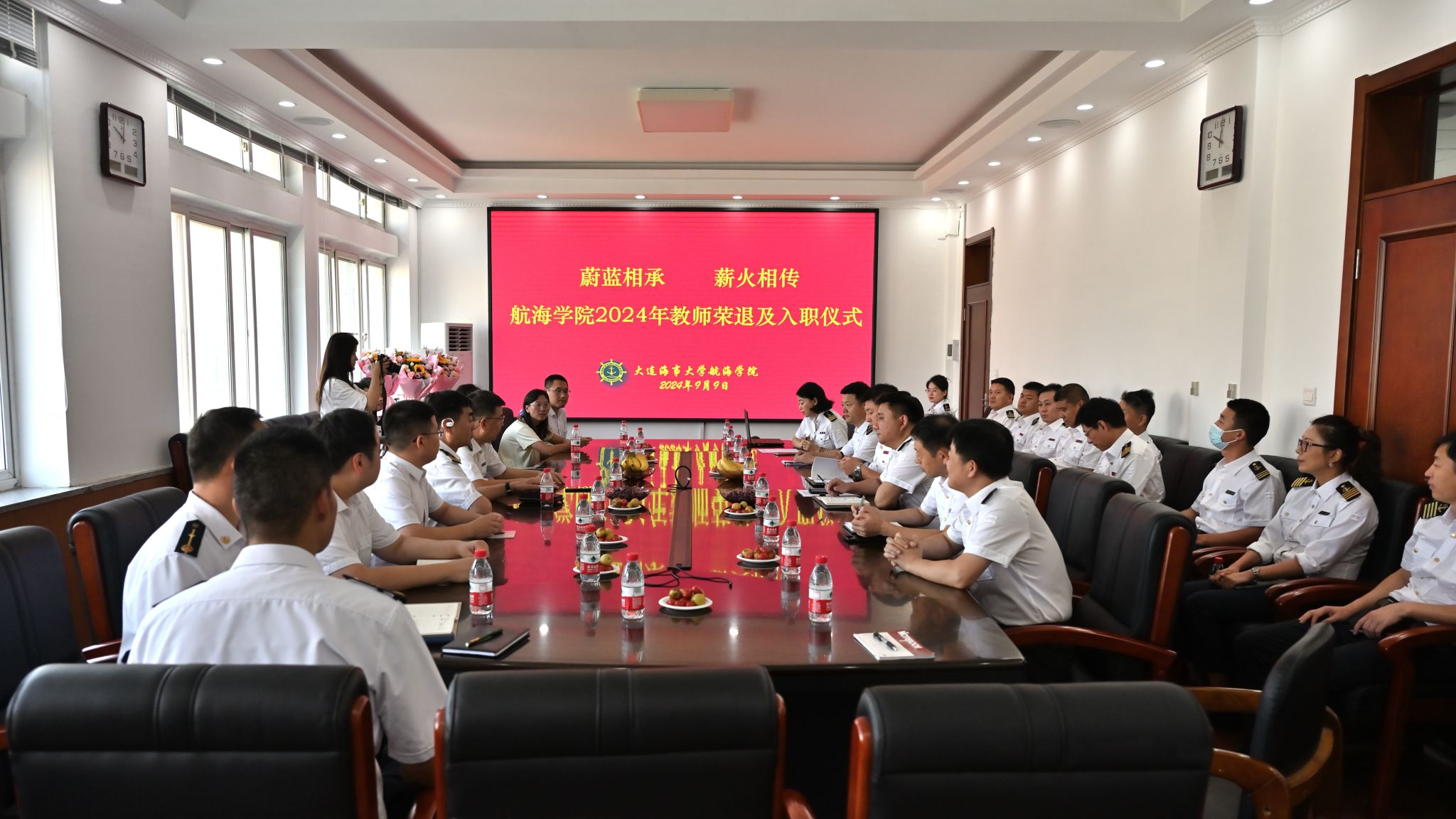 为庆祝中华人民共和国第四十个教师节,9月9日上午航海学院在航海楼隆重举行2024年“蔚蓝相承,薪火相传”教师荣退及入职仪式。学院领导班子成员、2024年退休教职工及新入职教师、各教研室(中心、所)负责人和教师代表参加了仪式,仪式由行政办公室主任温萍主持。