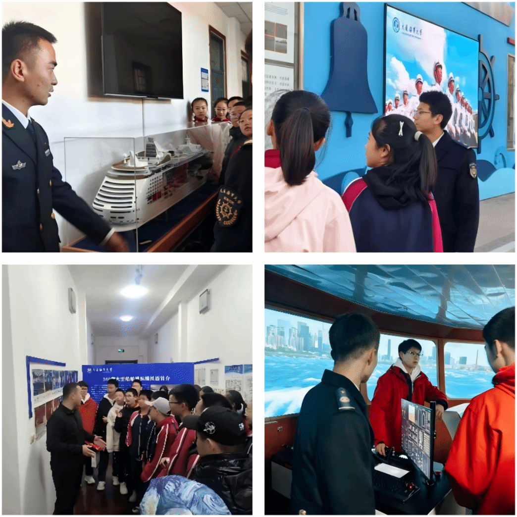 活动期间,中学生们依次参观了校园景观、航海楼船模展示区、半军事管理文化长廊及航海模拟器,从感受我校浓厚的文化底蕴,到深入了解中国高等航海教育的发展脉络,从领悟半军事管理的文化内涵,到亲身体验远洋船舶模拟操纵,学生们深入感受到海洋文化、航海文化的独特魅力,了解了航运业的广阔发展前景。在学院指导员和团委、学生会志愿者细致地讲解下,他们不仅对航海事业有了直观认识,还在航海科普教育中深刻体会到强国兴国的使命与责任。