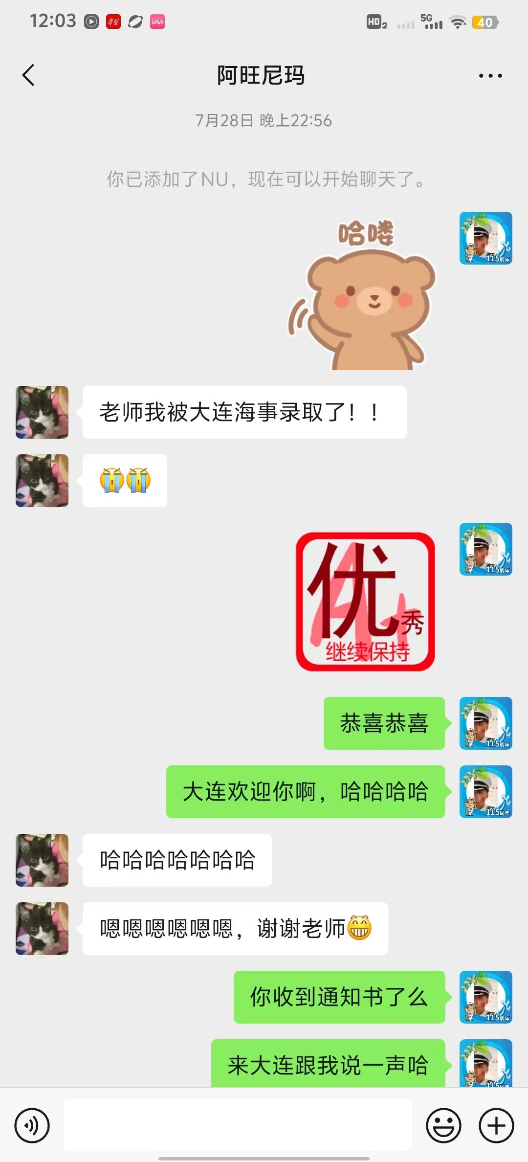 今年7月28日晚,阿旺尼玛得知被大连海事大学录取的信息,他第一时间向支教老师报喜,“老师我被大连海事录取了”,他迫不及待将喜讯告诉增进鼓励他、激励他的老师们。