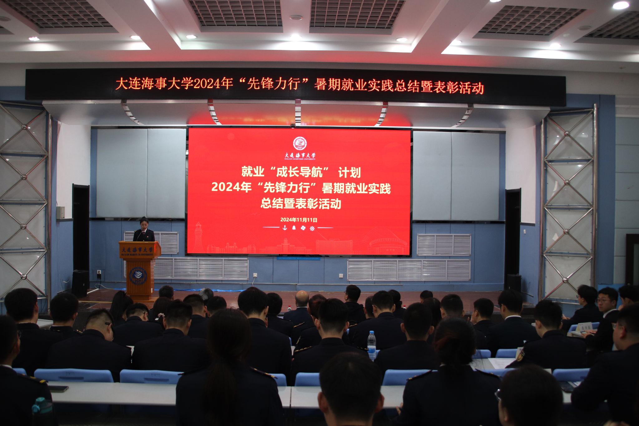 11月11日下午,我校于启航楼101举办就业“成长导航”计划--2024年“先锋力行”暑期就业实践总结暨表彰活动。大木国际物流集团有限公司大连分公司副总经理赵晨、公司总裁事务部主管高路,东软集团人力资源部校企合作委员会主任潘亮,我校学生就业指导中心主任胥佳明,学院学生就业工作主管领导、就业负责人,暑期就业实践团队带队教师、队员代表出席活动。