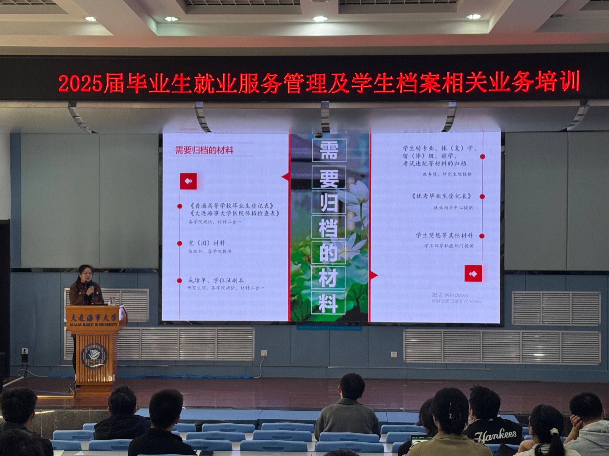 图书与档案馆王心妍老师为大家讲解了2025届毕业生档案工作的相关业务,从材料归档要求、档案派遣流程、档案留校申请、档案去向查询四个方面为大家详细介绍,确保2025届毕业生档案工作顺利开展。