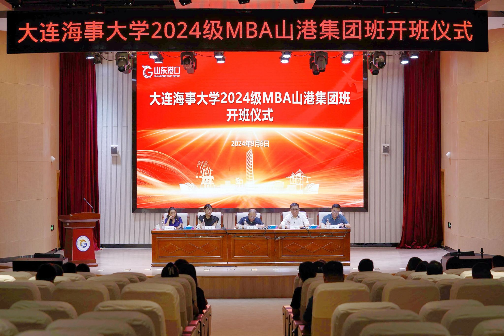 在金秋送爽、丹桂飘香的美好时节,大连海事大学航运经济与管理学院与山东省港口集团有限公司携手开启新篇章。9月6日上午9时,双方在青岛港湾职业技术学院隆重举行了2024级MBA校企合作班级的开班仪式。此次合作旨在深化双方在高端港航管理人才培养方面的合作,共同培养具有国际视野和实践能力的港口企业经营管理人才。