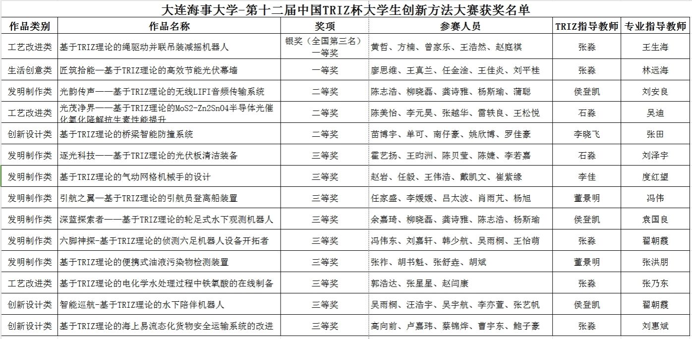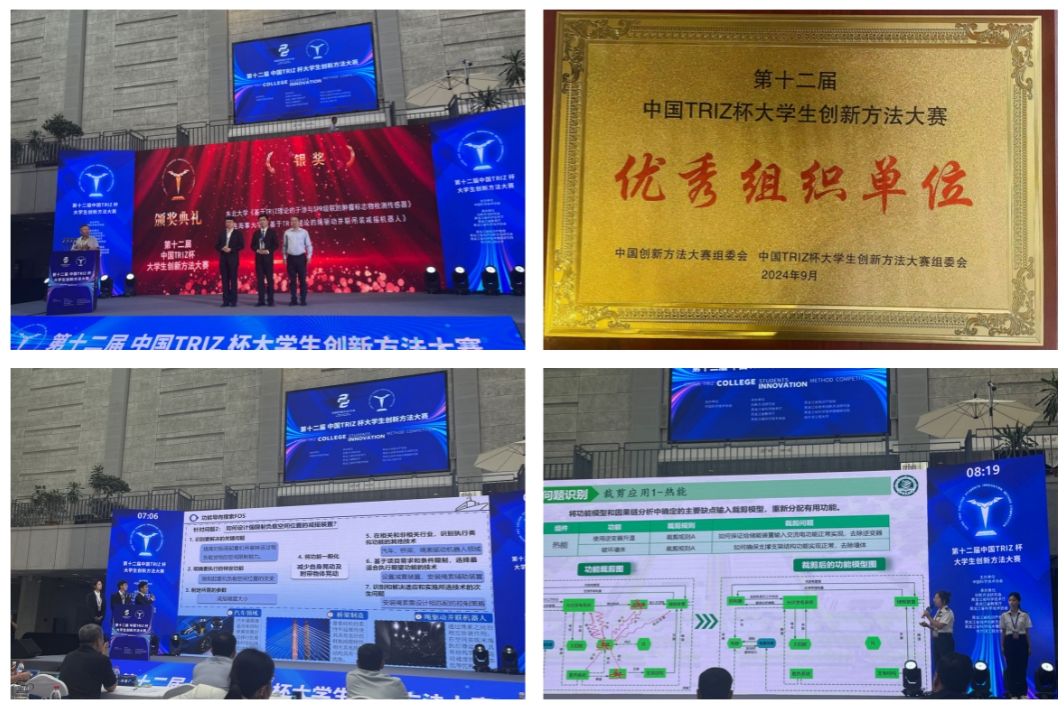 8月30日至9月1日,以“发展新质生产力,促进高质量发展”为主题的第十二届中国TRIZ杯大学生创新方法大赛决赛在哈尔滨成功举办。本次我校共推荐选送23项作品参加国赛,最终获得国赛奖项14项,其中一等奖2项,二等奖3项,三等奖9项,为近年来最好成绩。“海涌风徜”“匠筑拾能”两个团队入围全国十二强,经过总决赛激烈对决,最终获得全国第3名(银奖)和第8名的好成绩,这是我校学子首次在该赛事获得银奖。学校荣获优秀组织单位。