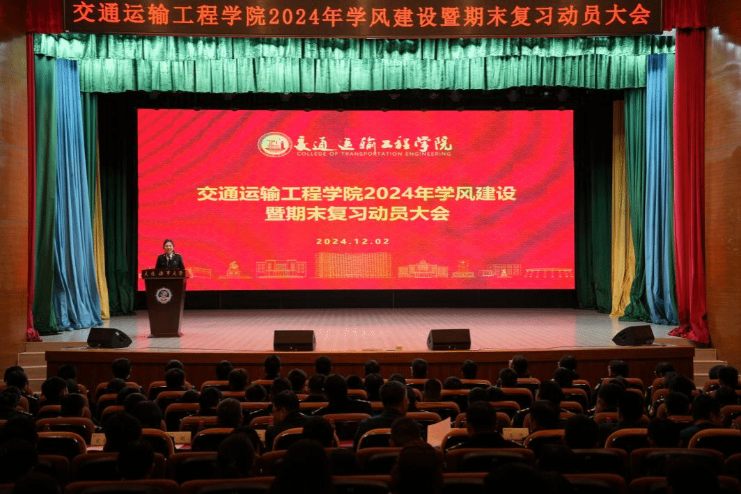 为进一步强化学风建设,总结本年度学风建设成效,表彰学风建设活动先进个人,筑牢师生创建优良学风的共识,教育引导学生全心投入到期末复习备考,12月2日,交通运输工程学院组织召开了2024年学风建设暨期末复习动员大会。学院院长计明军、副院长李晓飞、副院长王沛、副院长郑建风、党委副书记兼副院长慕涛出席大会。各专业系主任、新生班级班主任、全体指导员及各年级学生代表参加本次大会。