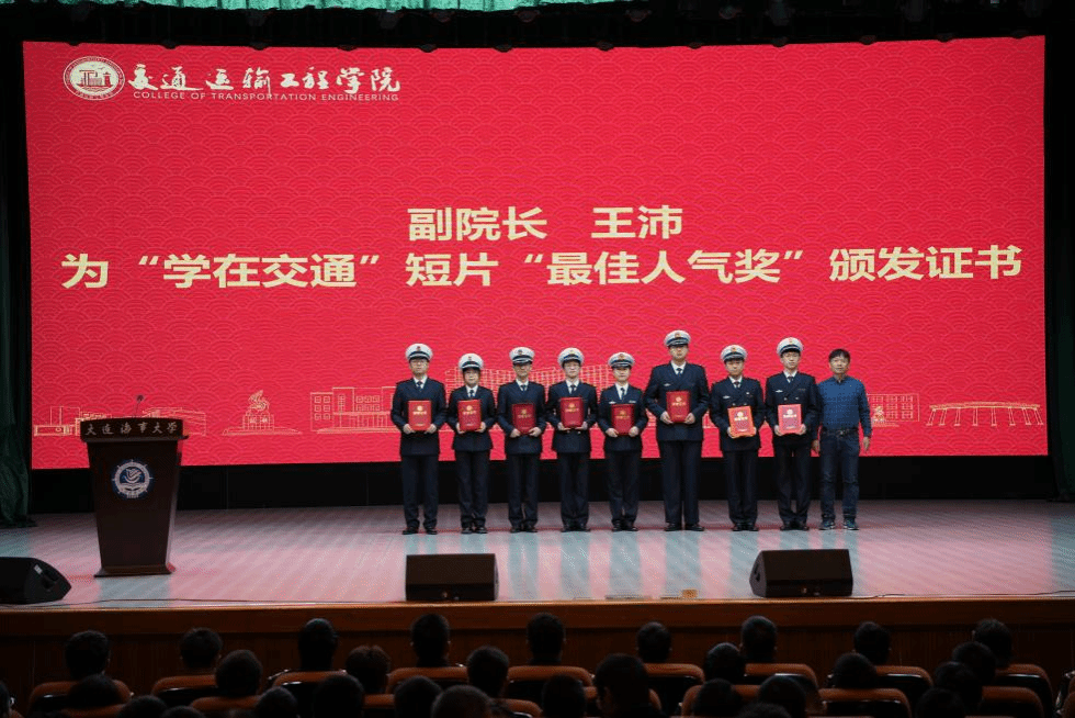 王沛为“学在交通”短片“最佳人气奖”颁发证书。学院组织各门课程考试成绩优异的学生录制“学在交通”微视频,讲授该门课程学习方法和心得体会,已录制78期,浏览量7万人次,发挥朋辈领学作用,帮助学生找到正确学习方法,提高学习效率。