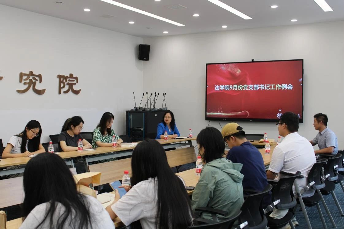 9月13日,法学院党委在中伦文德报告厅组织召开了9月份党支部书记工作例会,学院党委书记徐燕、党务办公室主任李俊英、各党支部书记以及党建服务中心各部门成员参加了本次会议,会议由李俊英主持。