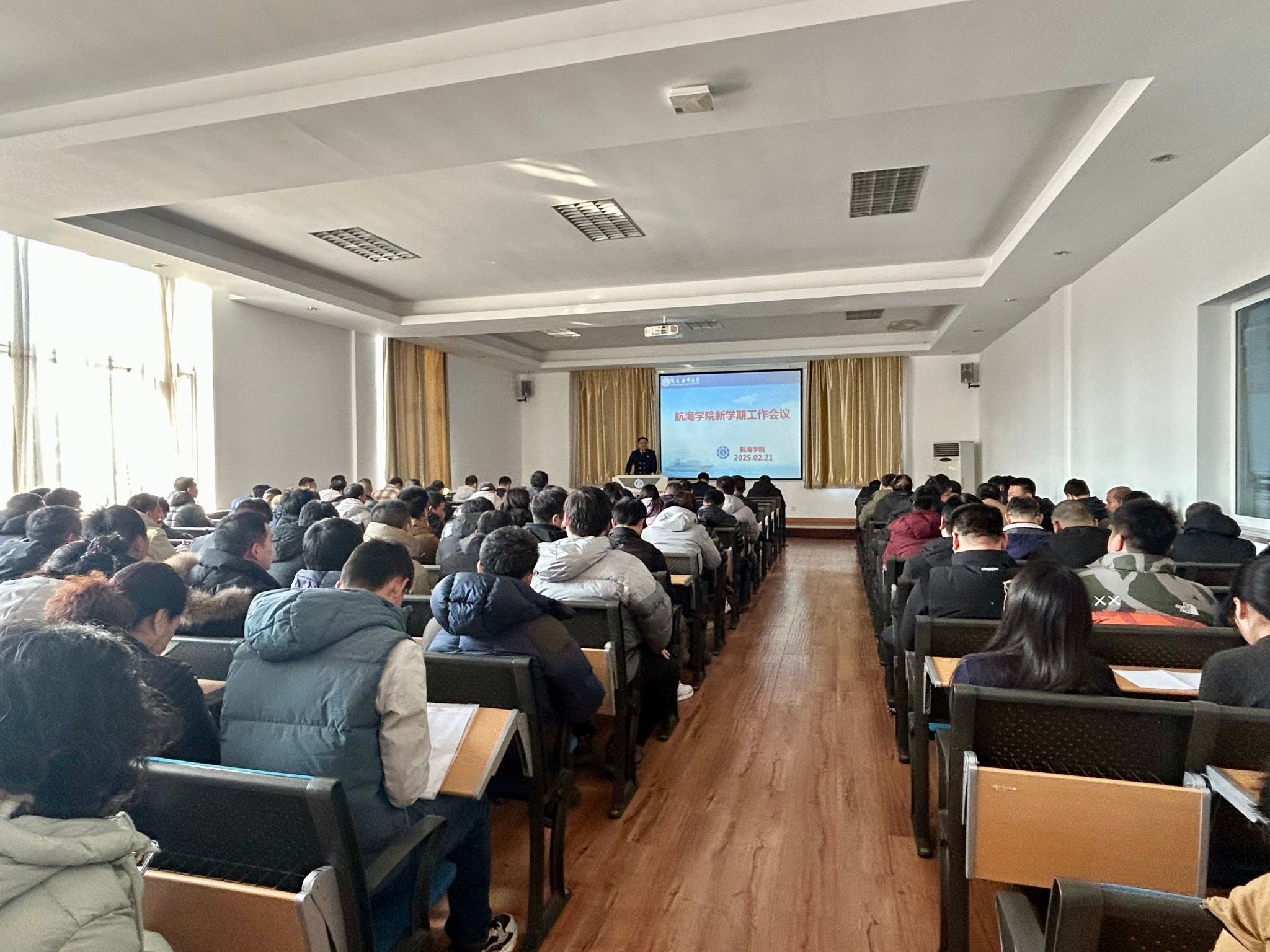 2月21日上午9点,航海学院在航海楼314召开新学期工作会议,重点部署安排2025年度重点工作,通报情况,部署任务。学院全体教职工参加会议,会议由学院党委书记刘益迎主持。