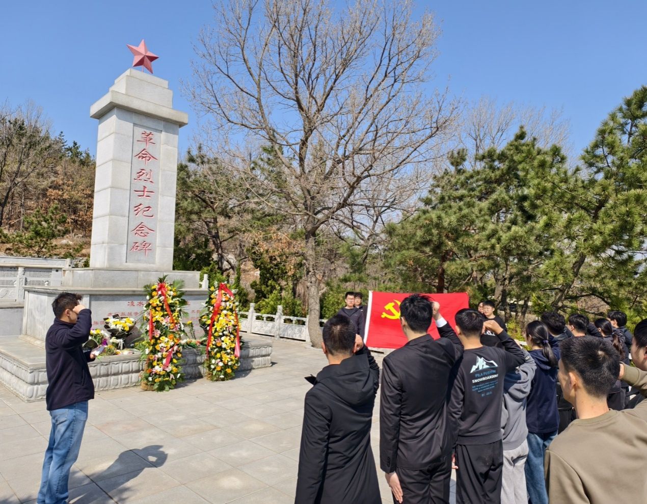 线下,支部前往大连市凌水烈士陵园开展 “三个一” 实践教育活动。