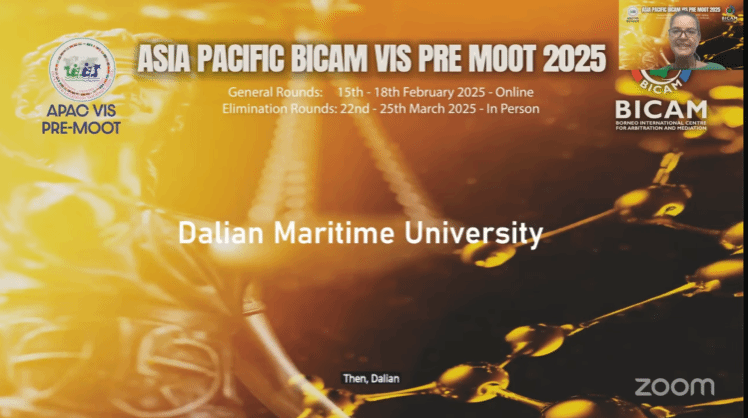 淘汰赛在马来西亚沙巴州婆罗洲国际仲裁与调解中心(Borneo International Centre for Arbitration and Mediation,BICAM)线下举行。我校代表队先后对阵武汉大学、马来亚大学,与清华大学、上海交通大学、北京师范大学、上海对外经贸大学一同成为成功晋级全球16强的中国队伍。
