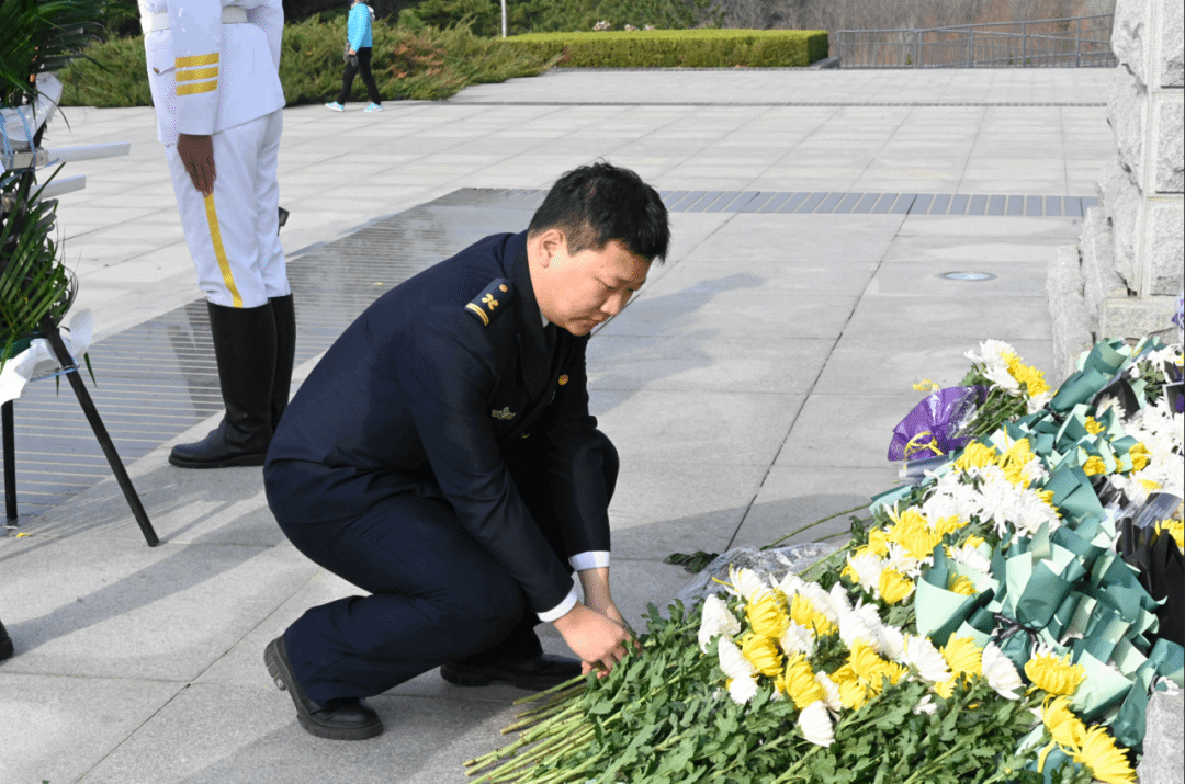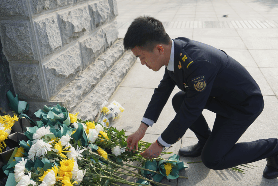 仪式尾声,同学们逐一上前,手捧鲜花,轻轻放置于纪念碑前,随后缓缓绕行,深情瞻仰这座历史的丰碑。