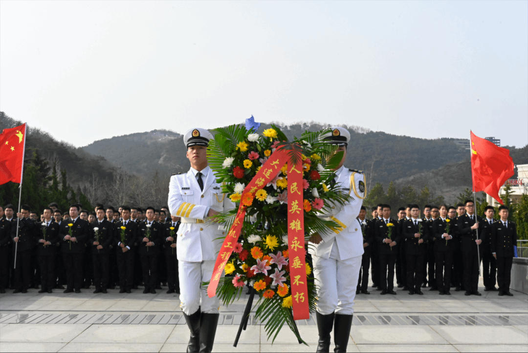 活动包括祭英烈仪式、烈士纪念馆观瞻和烈士墓祭扫三个部分。轮机工程学院团委书记裴长盛参加活动,指导员、思政课教师、学生党员代表和团员代表共计70余人参加了活动。