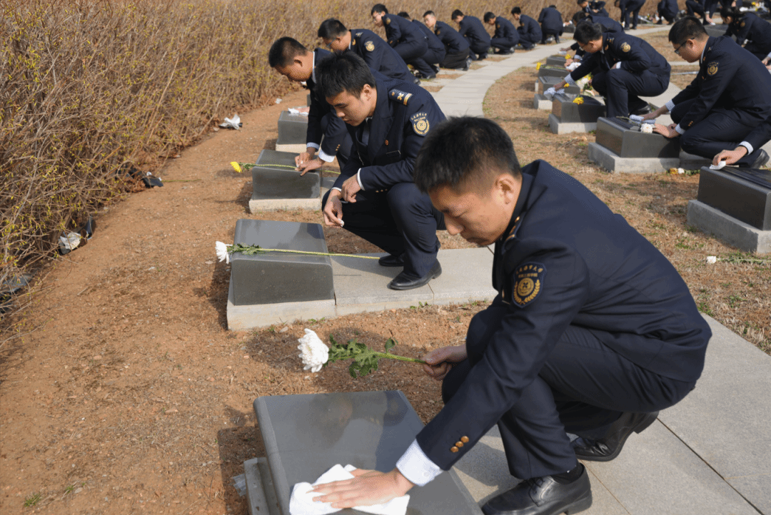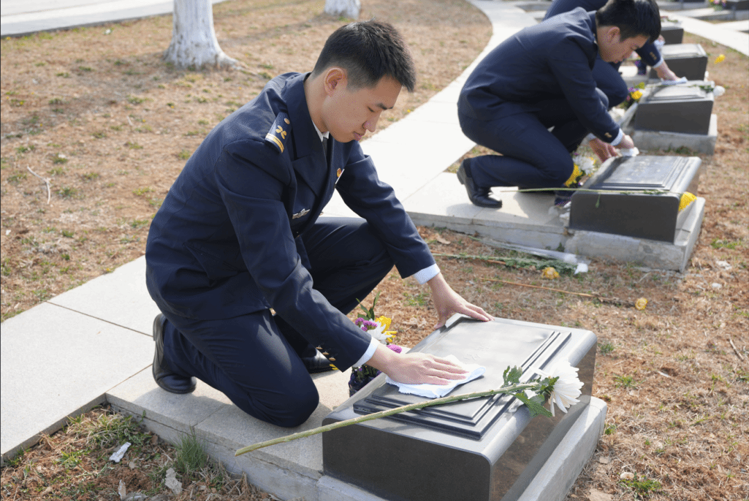 鲜花献英烈,哀思寄忠魂。祭奠仪式结束后,全体师生前往墓区瞻仰烈士墓,敬献鲜花,擦拭墓碑。