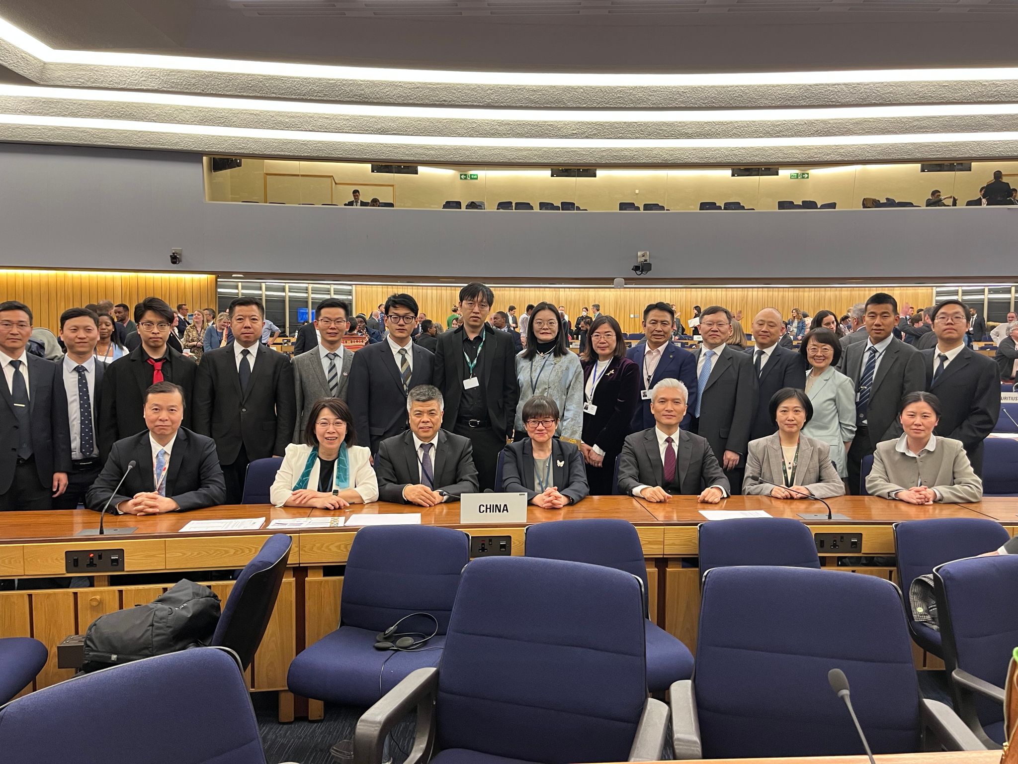 图1.MEPC 83次会议中国代表团 张爽(一排右2)、黎泉(二排右2)