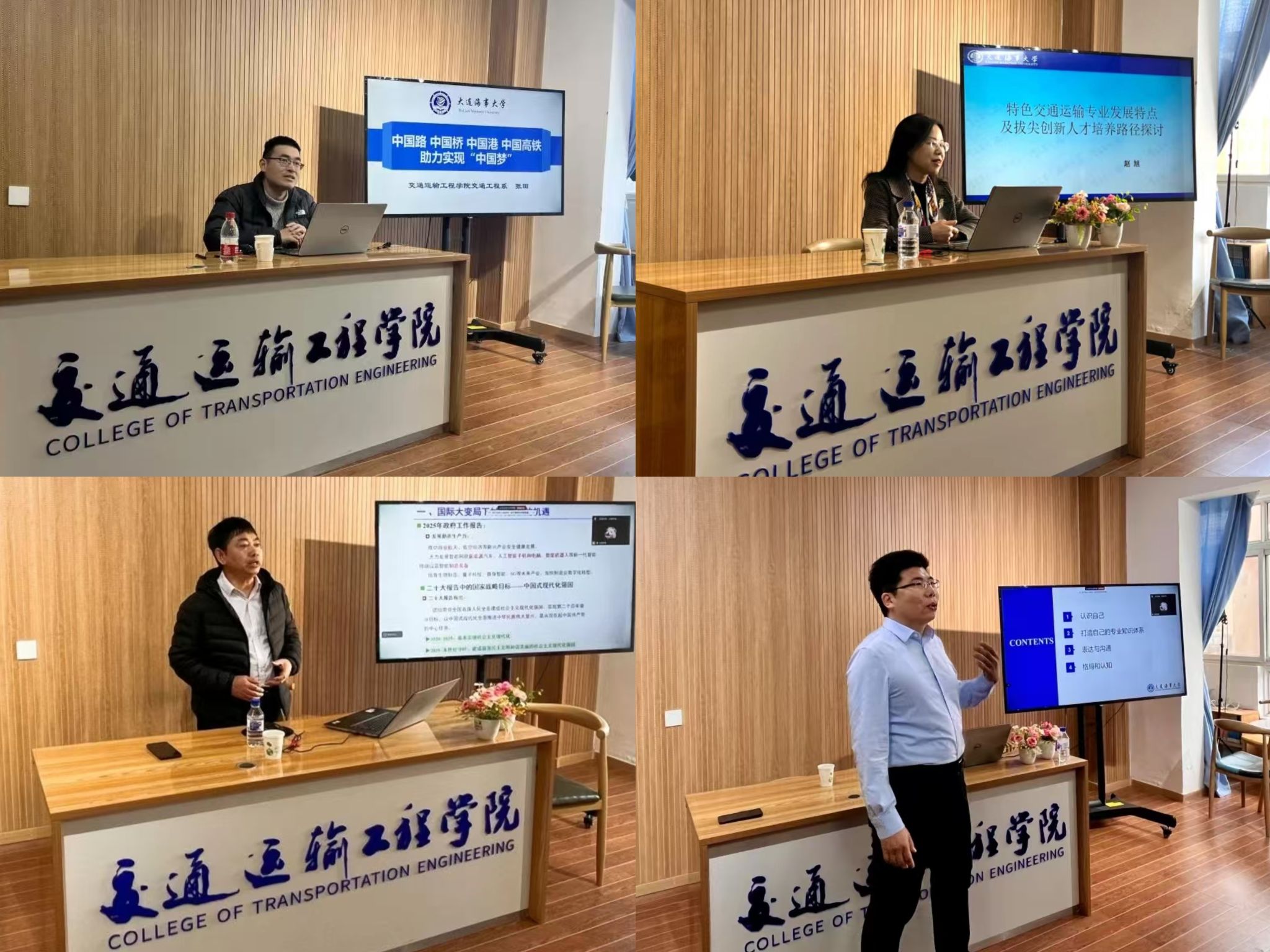 交通工程系主任张田副教授带来《新时代下交通基础设施的建设发展》专题讲座,寄语同学们在学习中增长才干,在合作中成就梦想,共同为推动我国乃至全球交通事业的可持续发展贡献力量;交通运输系主任赵旭教授作《特色交通运输专业发展特点及拔尖创新人才培养路径探讨》专题讲座,围绕交通运输专业发展现状和未来前景,帮助与会学生明确专业定位,鼓励同学们学思践悟打好专业基础,知行合一践行“国之大者”的使命责任;材料科学与工程学科带头人黄乃宝教授作《强国战略和‘双碳’目标下材料面临的机遇与挑战》专题讲座,以国家战略需求为导向,深入剖析了能源材料领域的技术演进脉络与学科发展方向,鼓励同学们将个人理想融入国家科技创新大局,为材料学科攀越高峰蓄力;学院学科建设中心主任吴迪副教授带来《解码大学生活,探寻学习本质》专题讲座,结合自身本硕博贯通培养经历,系统阐释了新时代大学生的成长逻辑,寄语同学们主动肩负时代使命,在服务交通强国、海洋强国战略中展现责任与担当。