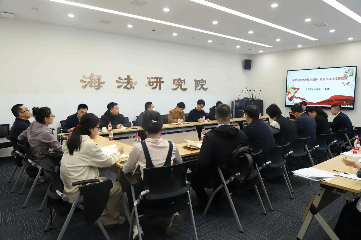 吕海宁就学院深入贯彻中央八项规定精神学习教育提出三点要求:一是要以学习教育专题辅导为契机,学懂弄通做实中央八项规定精神;二是提升学习教育质量,坚决防范形式主义和“低级红”“高级黑”;三是要严格对照查摆问题,将问题整治转化为推动个人和学院发展的强劲动力。