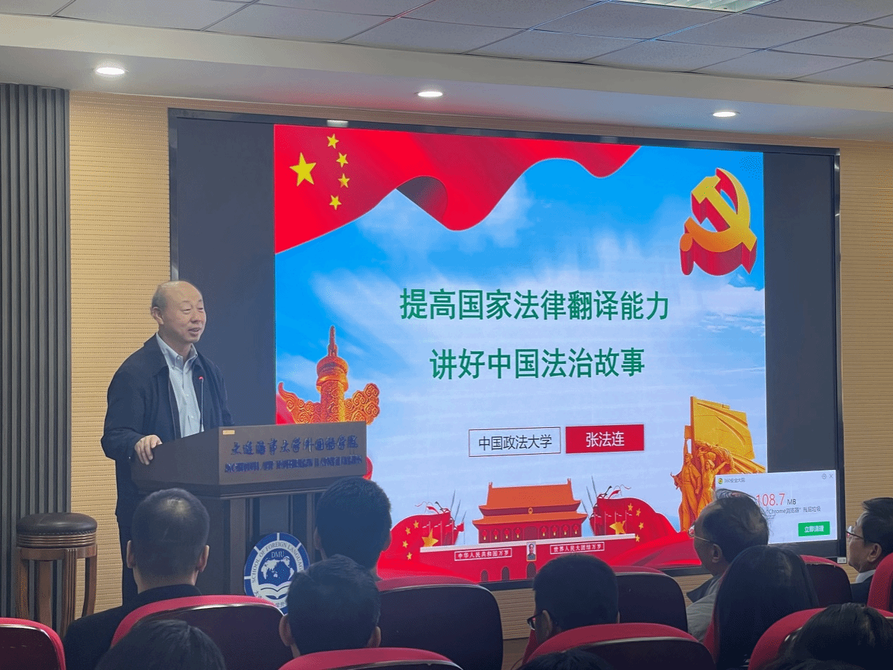 张法连教授作题为“提高国家法律翻译能力,讲好中国法治故事”的报告,他表示,法律翻译领域亟待规范化、系统化、制度化,法律翻译教育改革势在必行,并强调新时代国家对外开放向纵深发展,国家迫切需要大量涉外法律人才,市场的需要催生出法律英语新兴交叉学科。法律英语学科内涵丰富,用途广泛,与我国对外开放的伟大实践紧密相连,具有重要的战略意义。在习近平新时代中国特色社会主义法治思想指引下,加快设置法律英语专业,积极培育法律英语新兴交叉学科增长点,意义重大,影响深远。