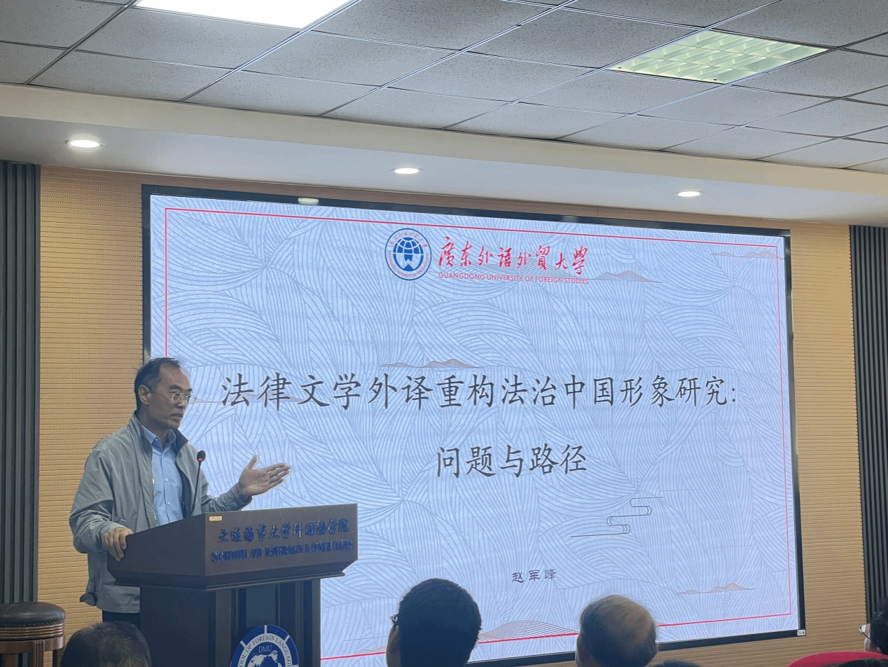 赵军峰教授作题为“法律文学外译重构法治中国形象研究:问题与路径”的报告,从中西“法律与文学”研究源流谈起,厘定了中国法律文学的内涵与范畴,廓清了研究相关突出问题,明确了法律文学外译之于法治中国形象重构的重要意义,并提炼了机制原理,提出了通则模式。