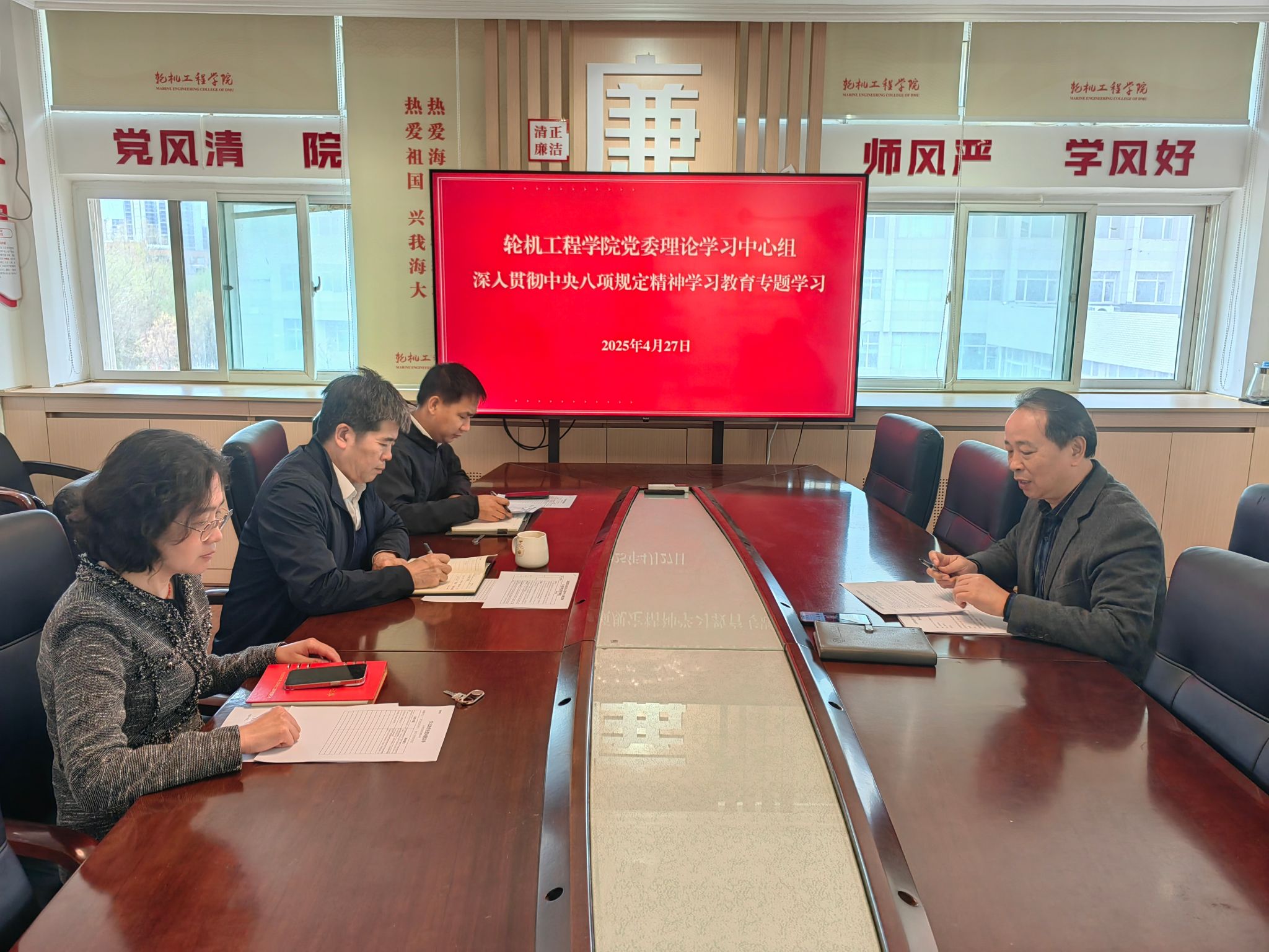 4月27日下午,轮机工程学院党委在轮机楼307会议室开展党委理论学习中心组深入贯彻中央八项规定精神学习教育第二次专题学习。学院党委理论学习中心组成员参加会议,会议由学院党委书记吴桂涛主持。