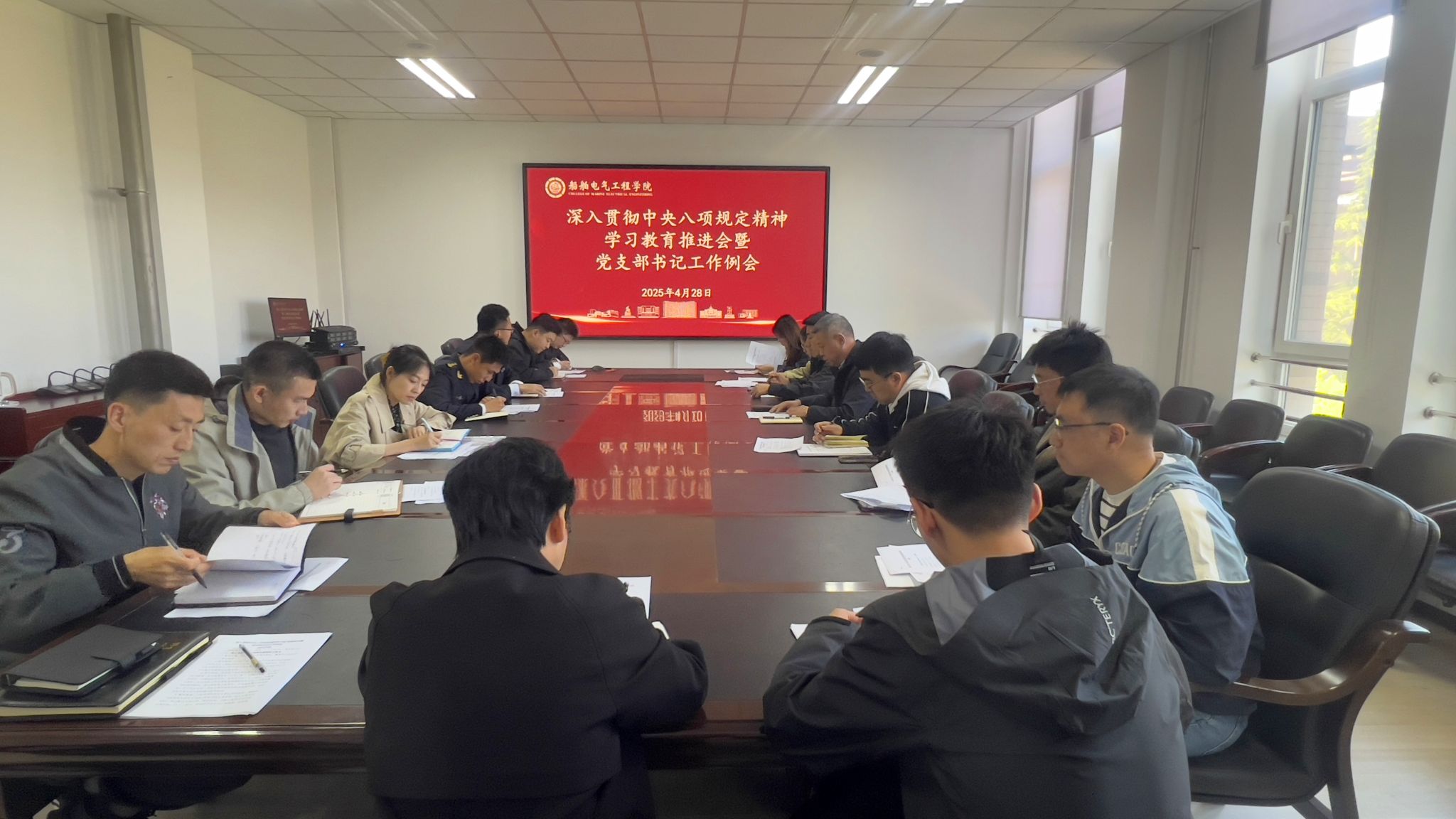 为扎实开展深入贯彻中央八项规定精神学习教育,4月28日下午,船舶电气工程学院党委召开深入贯彻中央八项规定精神学习教育推进会暨党支部书记工作例会。学院党委书记张术佳、党委副书记王超、全体党支部书记参加。会议由张术佳主持。
