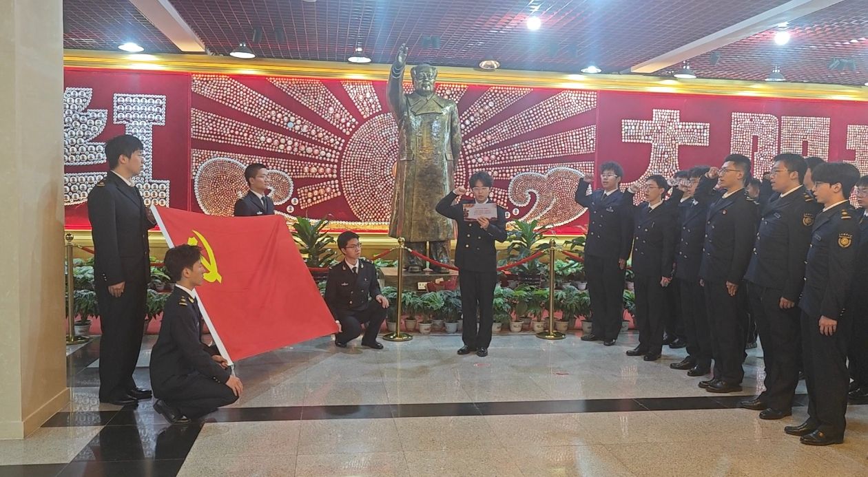 随后,全体师生党员来到毛泽东同志塑像前,举行了重温入党誓词活动,“我志愿加入中国共产党,拥护党的纲领,遵守党的章程……”铿锵有力的誓言在馆内回荡,表达了师生党员们对党的无限忠诚和为共产主义事业奋斗终身的坚定决心。