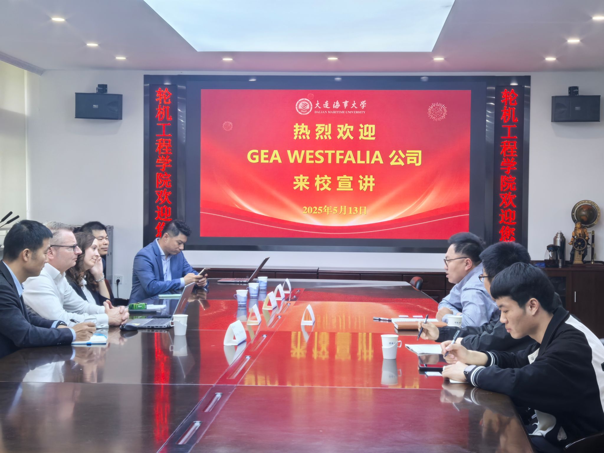 会上,Sven Jadzinski总监首先系统介绍了GEA WESTFALIA在船舶领域的核心技术与创新成果,并重点展示了其先进的燃油处理系统、节能减排解决方案以及智能化设备在实船应用中的典型案例。随后,与会人员围绕"船舶清洁能源技术路径""智能监测系统开发"等议题展开深入讨论。双方特别探讨了氨燃料储运技术、甲醇燃料国家标准建设等内容,并寻求与轮机工程学院现有研究方向的结合点。会议最后,双方初步达成了在人才培养、技术研发等方面的合作意向,并提出了持续深度合作的展望,为后续深化合作、推进成果转化与应用奠定基础。