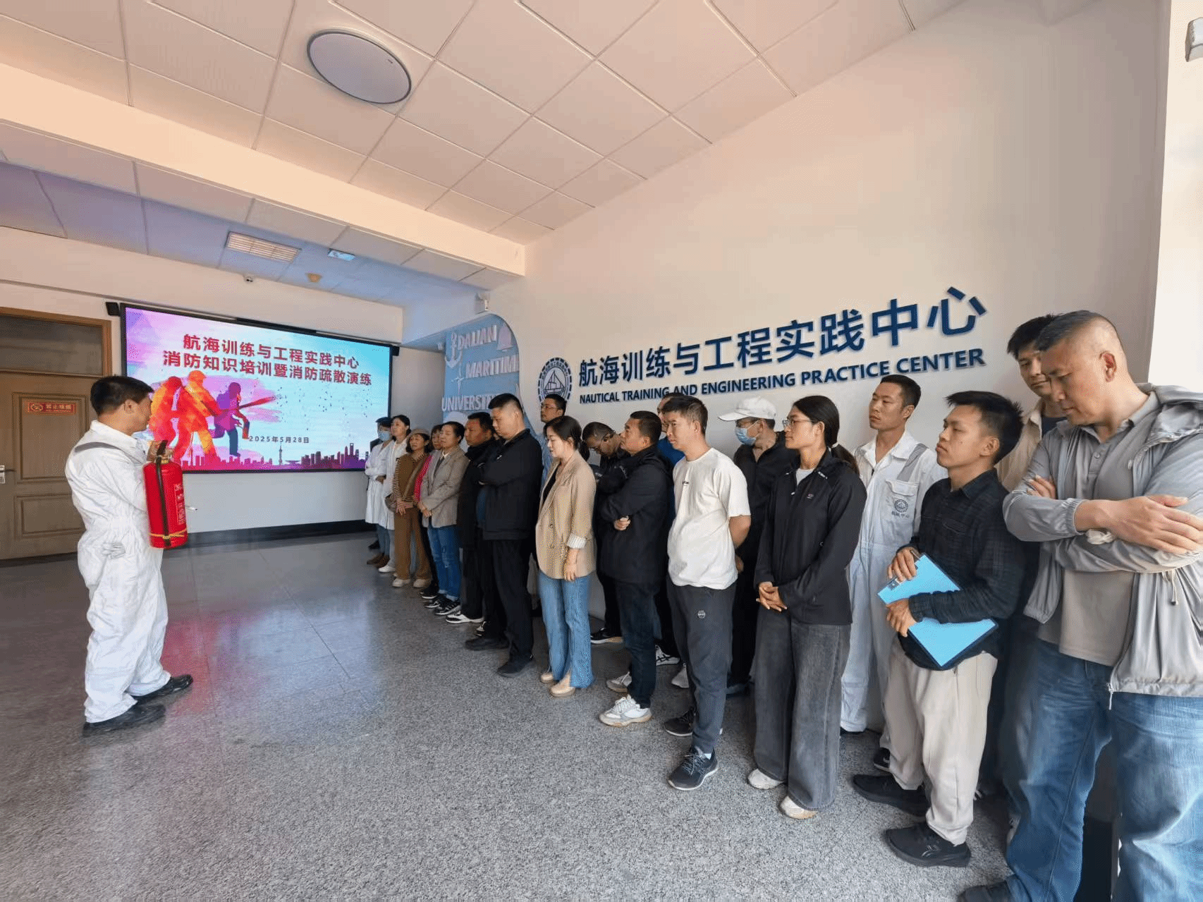 首先,航海训练与工程实践中心消防教学部部长杜林海向中心教师讲授火灾的成因、预防措施、初期火灾的扑救方法以及火场逃生的基本技巧,讲解了灭火器等常见消防器材的正确使用步骤。还针对不同场所的火灾特点,提供了针对性的消防安全建议,提醒大家在日常工作和生活中要时刻保持警惕,注意用火、用电、用气安全,及时消除身边的火灾隐患。