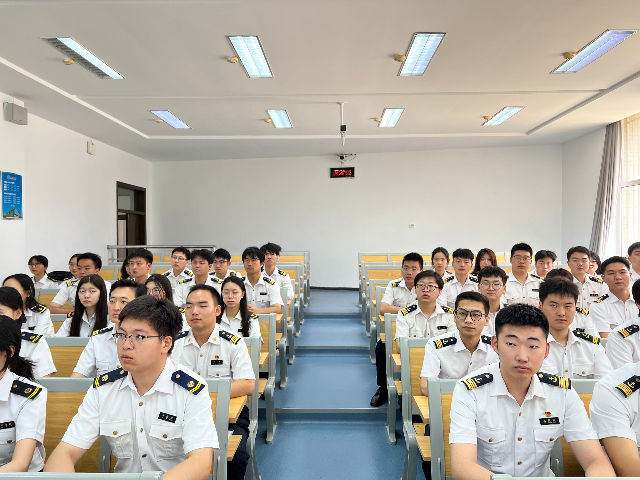 在专题党课环节,安宁系统梳理了党的十八大以来中央推进党风廉政建设和反腐败斗争的具体举措,并结合纪检监察机关处置的典型案例,重点解读了年轻干部违纪违法案件的特点,深入剖析年轻干部违纪违法的成因,指出青年党员步入社会后面临的廉洁考验。他希望全体毕业生党员始终牢记党员身份,时刻以“慎初、慎微、慎独”校正人生航标,常怀“赤诚报国”的忠诚心、“常念相助”的感恩心、“国之大者”的责任心,在人生新的征程中坚守底线、不越红线,以清正廉洁的作风践行航海人的初心使命、责任担当。
