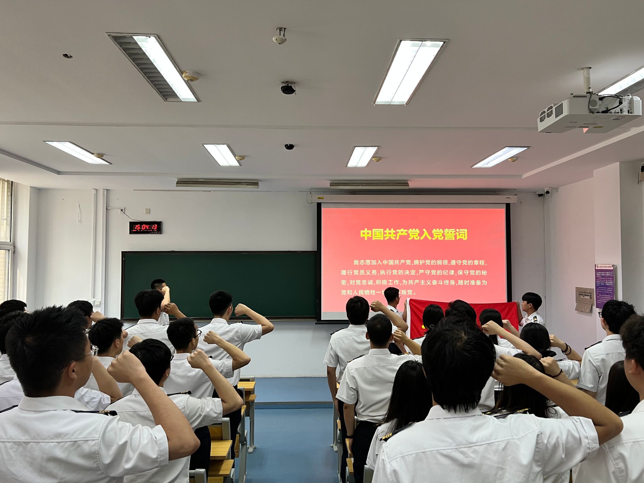 活动最后,全体毕业生党员在柴壮带领下重温入党誓词。大家纷纷表示将牢记党员身份,不断加强党性修养和廉洁自律意识,做到知敬畏、存戒惧、守底线,自觉将使命责任内化于心、外化于行,以崭新姿态筑梦深蓝。