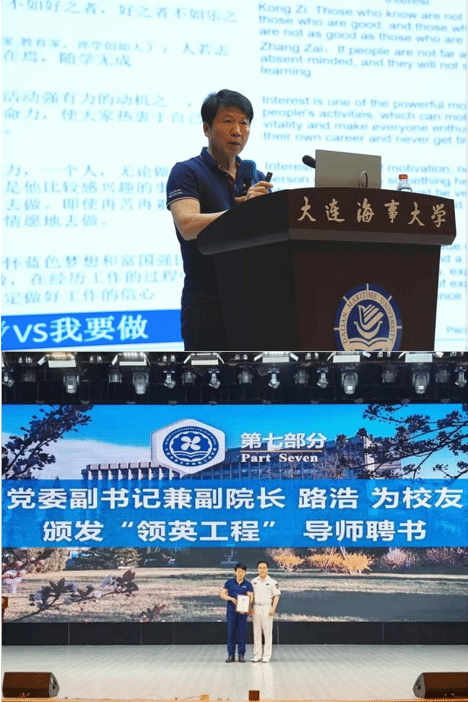 最后,路浩为聂来宝颁发轮机工程学院“领英工程”学生职业发展与就业指导导师牌匾。