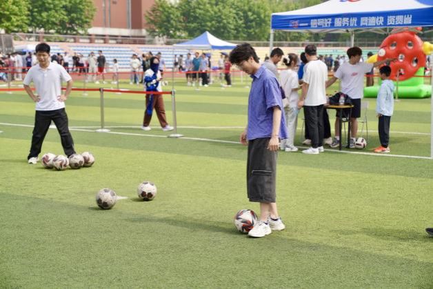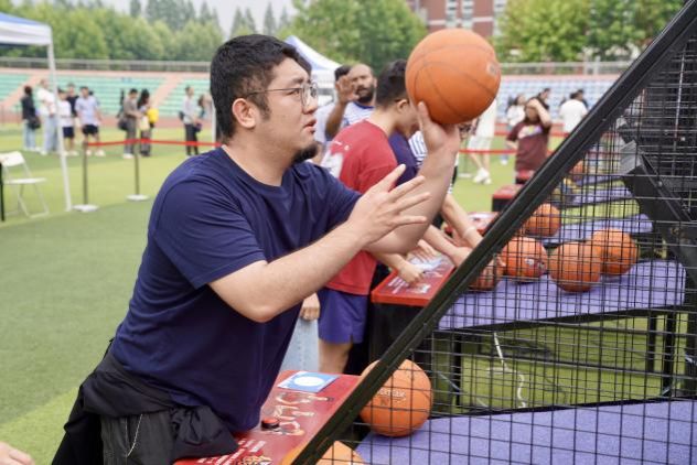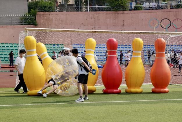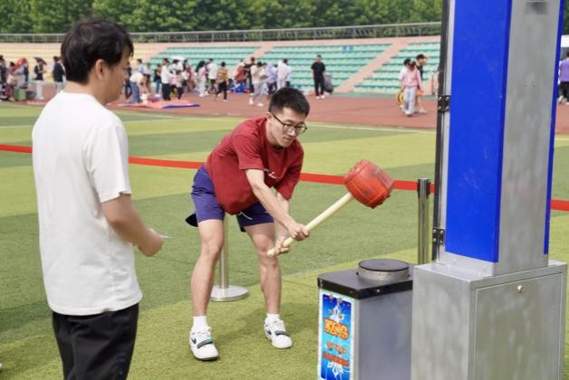 下午,毕业嘉年华活动在西山体育场率先拉开帷幕,现场气氛热烈。旧物交易会上,毕业生们出售承载大学记忆的书籍、生活用品等闲置物品,现场秩序井然。一件件旧物的流转,承载着学子间的深厚情谊和对未来旅程的轻装期许。游园会则设置了专属游戏区域,通过投掷、射门、弹射、挥锤、投篮、滚球等竞技,集取象征海大地标的文创印章。现场欢声笑语不断,气氛活跃。