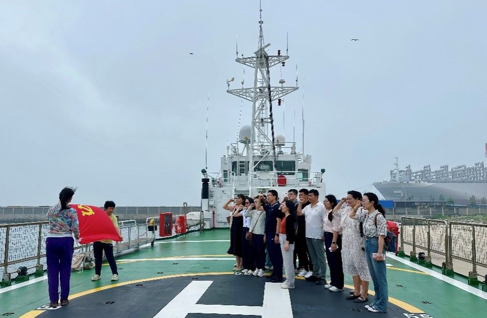 在“海巡0302”轮上,党员们面向鲜红的中国共产党党旗,高举右拳,齐声宣读入党誓词,重温入党时的庄严承诺和坚定决心,深刻感悟一名共产党员的责任与使命。