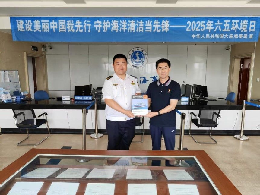 学术期刊中心党支部书记王勇向旅顺海事处赠送了2025年上半年的《世界海运》期刊。