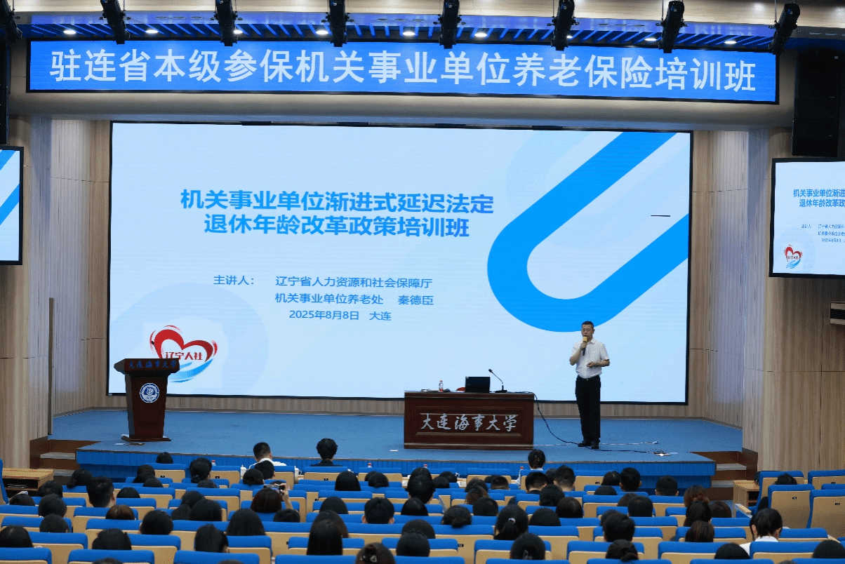 为进一步规范机关事业单位养老保险政策执行,确保全省统一步调,推动工作规范化、标准化、精细化,有效解决经办中的难点堵点问题,切实维护参保人员权益,省人力资源和社会保障厅、社会保险事业服务中心坚持主动上门服务送政策,8月8日,驻连省本级参保机关事业单位养老保险培训班在大连海事大学中远海运报告厅成功举办。培训班由辽宁省人力资源和社会保障厅主办、大连海事大学承办,驻连省本级参保机关事业单位的160余名干部参加培训。辽宁省人力资源和社会保障厅机关事业单位养老保险处处长秦德臣、大连市社会保险事业服务中心副主任杨平出席培训班。培训班由辽宁省社会保险事业服务中心机关事业养老保险服务中心副主任徐莹主持。