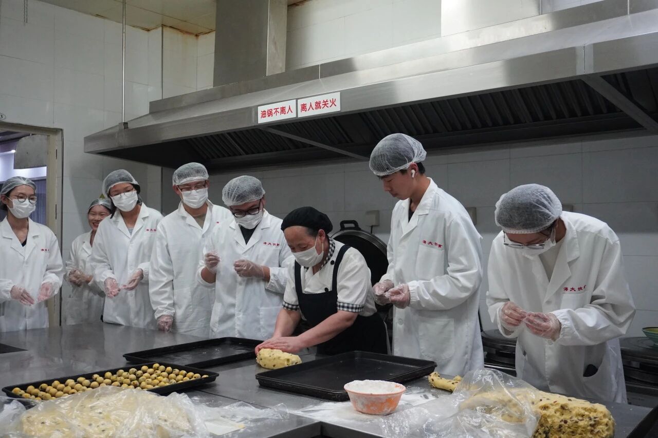 活动当天,学生在食堂面点师傅的指导下,认真完成称料、和面、压模等工序,细致制作出造型多样、寓意美好的饼干。经过烘烤,成品饼干色泽金黄、香味浓郁,被分装至独立包装中,并附上学生亲笔书写的祝福贺卡。