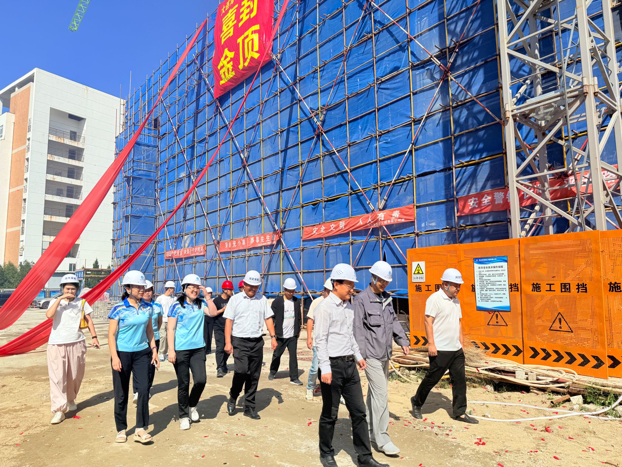 张召向参建各方表示衷心感谢。他表示,幼儿园建设项目是学校重要的民生工程,自开工以来,在各方共同努力下,工程进展顺利,基本按原定施工计划稳步推进。此次主体结构封顶,标志着项目建设取得了重要的阶段性成果,也为后续工程的顺利开展奠定了坚实基础。他希望各单位继续保持高效协作,严格把控质量,落实安全措施,确保项目按期完工并尽快投入使用,为全校教职员工提供优质的学前教育服务。