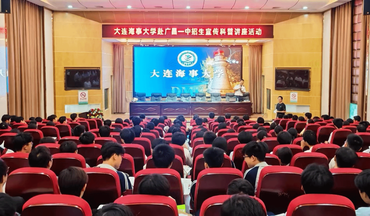 9月25日,肖仲明带队前往广昌第一中学开展招生宣传与科普讲座。广昌县科技局江华局长、广昌县第一中学刘经标党委书记、曾龙校长参加活动。航海学院黎泉副教授系统介绍了大连海事大学的办学特色、半军事管理模式及“双一流”建设成果,详细解读了学校的招生政策、录取情况及就业前景,强调学校在航运领域的人才培养优势。