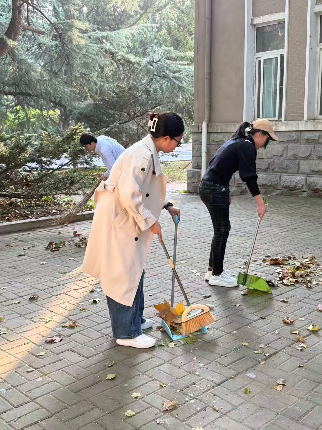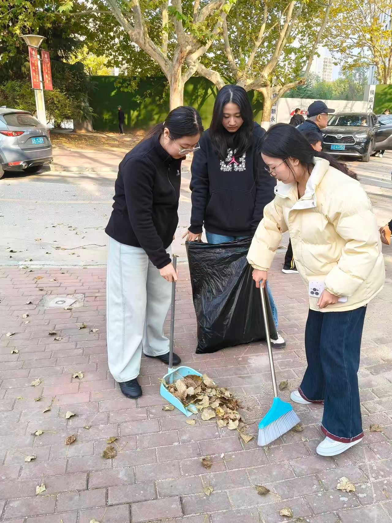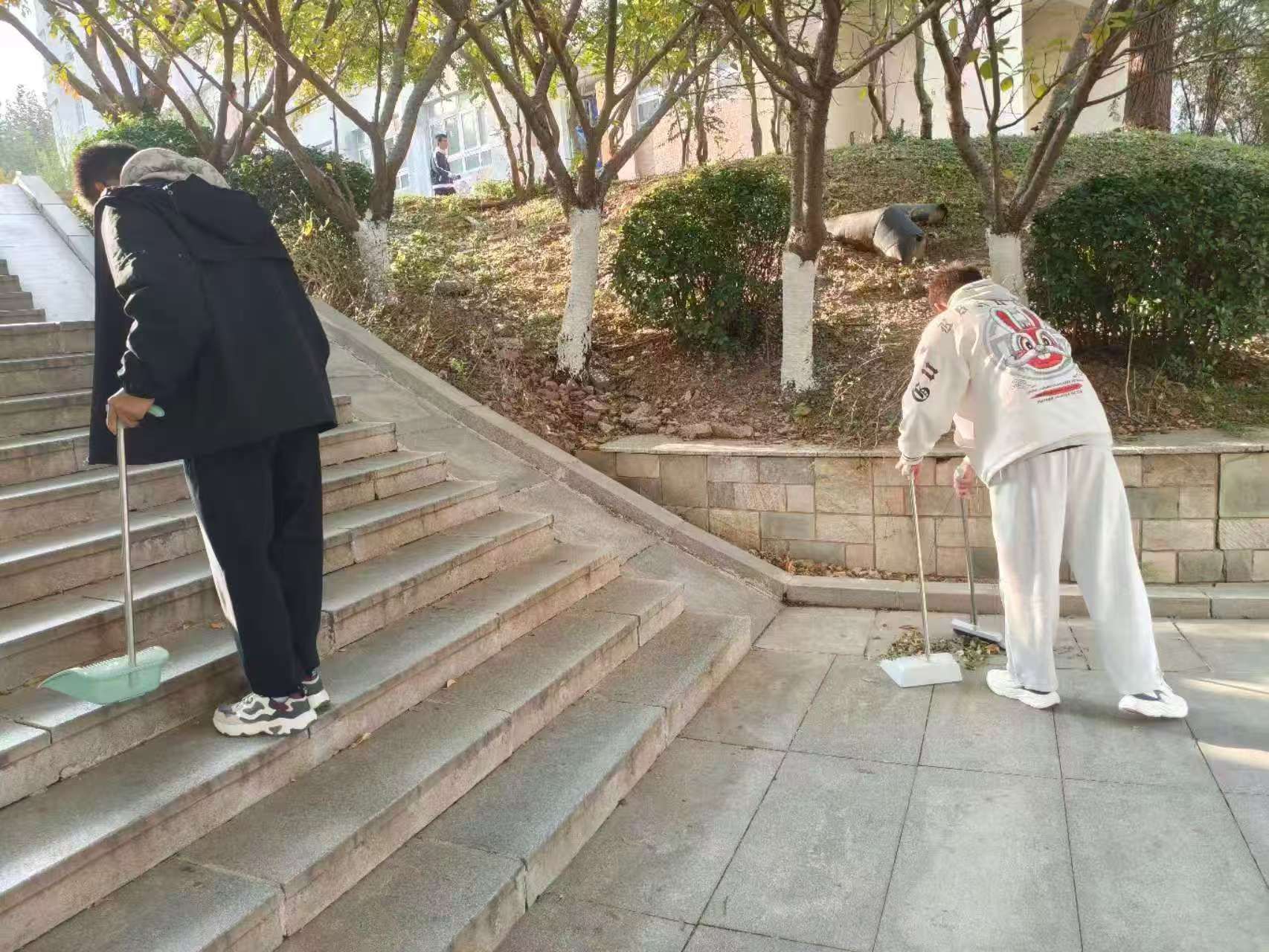 秋日午后微寒,理学院同学们仍保持高涨劳动热情。活动中众人分工明确,或清理落叶杂物,或捡拾杂物;大家协作配合,共同完成各项清洁任务。此次活动既改善了校园环境,也深化了同学们对劳动精神的认知,提升了协作能力与责任意识。