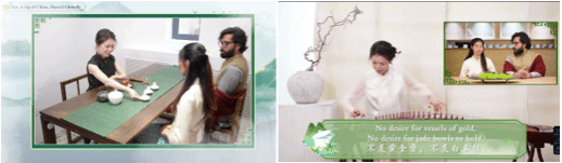 获奖作品以茶文化为切入点,创造性融合情景式、体验式、启发式等教学方法,探寻茶文化的中国根脉,让学习者在多元主体的跨文化互动中感受中华茶文化的魅力与影响力,旨在培养知茶爱茶,并用外语讲好中国故事的复合型国际传播人才。