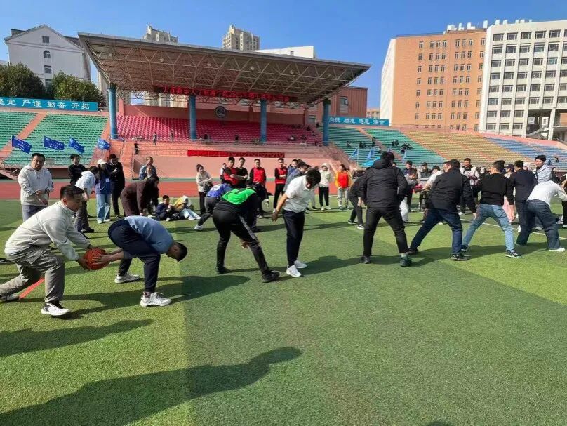 师生趣味项目同样精彩纷呈:点球大战的欢呼、三分投篮的喝彩、八字跳绳的节奏、“同舟共济”的口号,将赛场氛围推向高潮。旋风跑、背夹球等接力比赛,师生携手并肩,跌倒时的笑容与成功后的拥抱,让团结与信任成为最动人的底色。