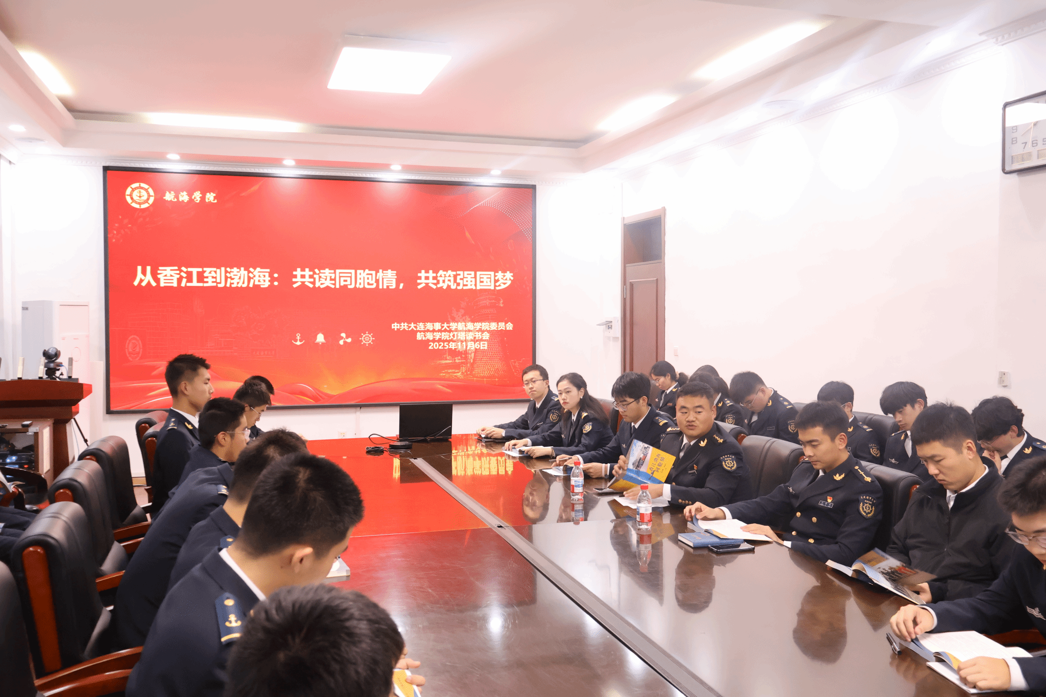 为深化爱国主义教育,弘扬民族团结精神,11月6日,航海学院组织开展了以“共读同胞情,共筑强国梦”为主题的读书分享活动,集中阅读、交流了由我校校友宋家慧船长主编的书籍《香江渤海同胞情》。活动由学院指导员关钰波主持,学生党员代表、入党积极分子及灯塔读书会成员共同参与活动。