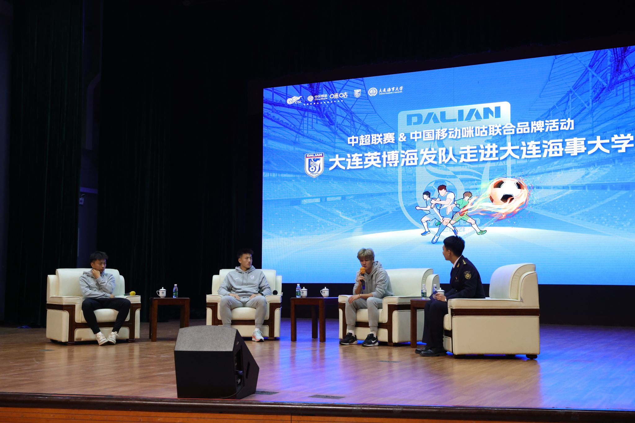 11月12日下午,由中超联赛与中国移动咪咕联合发起的足球品牌活动走进海事大学,大连英博海发队球员刘祝润、温家宝、赵佳楠现身校园进行足球文化交流,为海大学子带来了一场兼具专业性与互动性的足球盛宴。