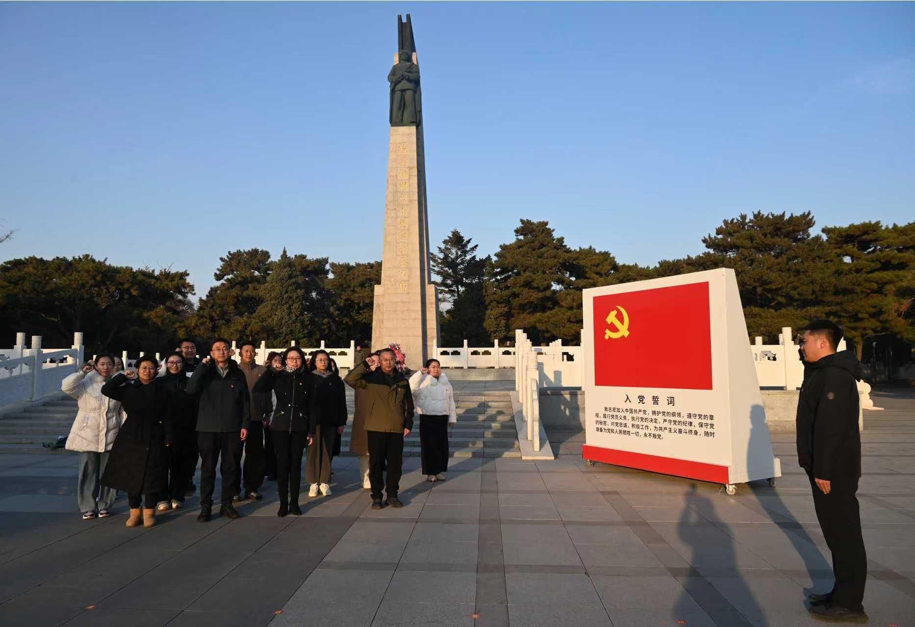 随后,队伍前往沈阳抗美援朝烈士陵园纪念馆,全体党员在英烈纪念碑前整齐列队,举起右拳重温入党誓词,怀着崇敬之心敬献花束。铿锵誓言在肃穆氛围中回荡,党员同志们再次接受党性的洗礼,坚定为教育事业奉献的决心。