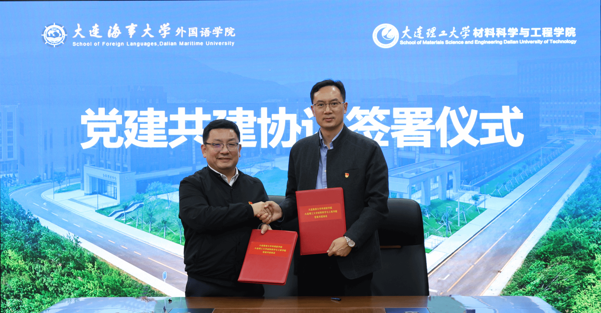 近日,大连海事大学外国语学院与大连理工大学材料科学与工程学院党建共建协议签署仪式在大连理工大学知远楼A304会议室隆重举行。材料科学与工程学院党委书记董红刚、外国语学院党委书记邵广、副书记谭冰,两院党支部书记代表等参会。