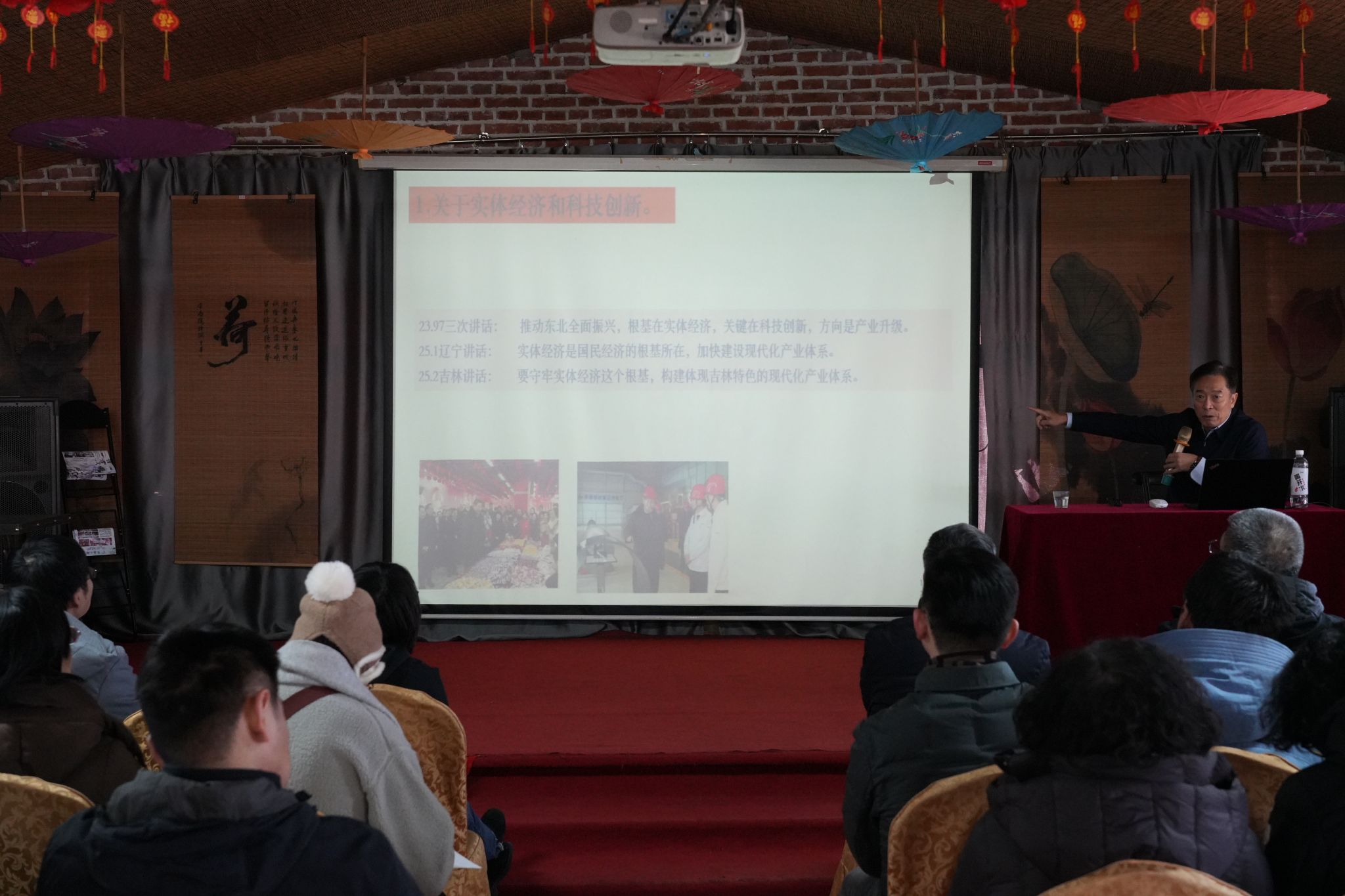 参观结束后,学院党委组织召开学习贯彻党的二十届四中全会精神专题培训,邀请大连党建研究会特约研究员刘文学教授做《奋力开创中国式现代化新局面——学习贯彻党的二十届四中全会精神学习体会》专题报告。刘教授围绕建设现代化产业体系、加快高水平科技自立自强、建设强大国内市场、加快构建高水平社会主义市场经济体制、扩大高水平对外开放等内容分享了自己的学习心得。此次报告会内容脉络清晰、深入浅出,让与会党员对《中共中央关于制定国民经济和社会发展第十五个五年规划的建议》有了更加深刻的认识和理解。