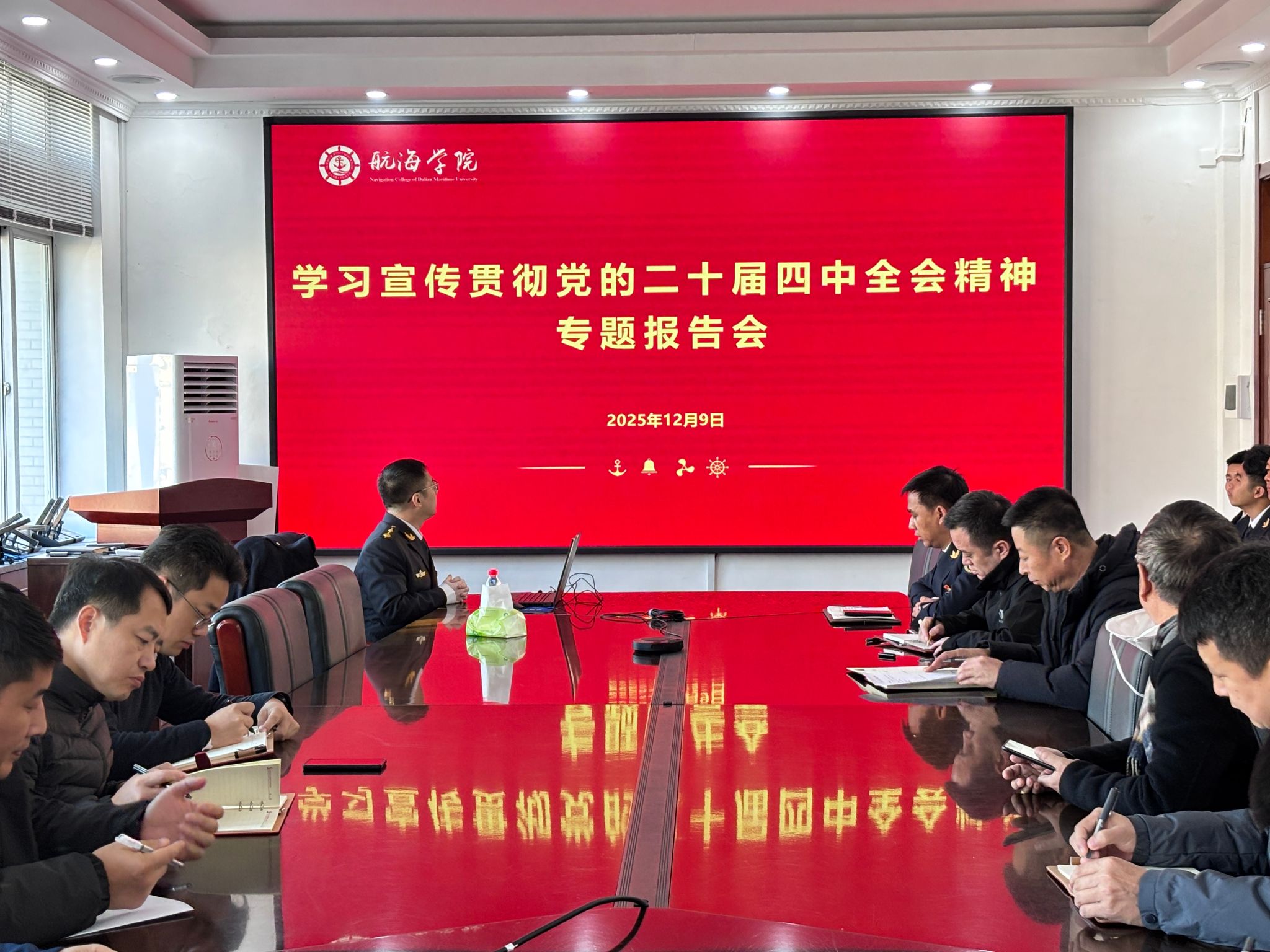 为深入学习贯彻党的二十届四中全会精神,全面落实学校党委关于学习宣传贯彻全会精神的工作部署,切实把思想和行动统一到全会精神上来,12月9日,航海学院邀请马克思主义学院魏灵学老师作题为《革命与改革的变奏:历史视域内的党的二十届四中全会》的专题辅导报告。报告会由学院党委副书记安宁主持,学院党委委员、纪委委员、全体党支部书记参加会议。